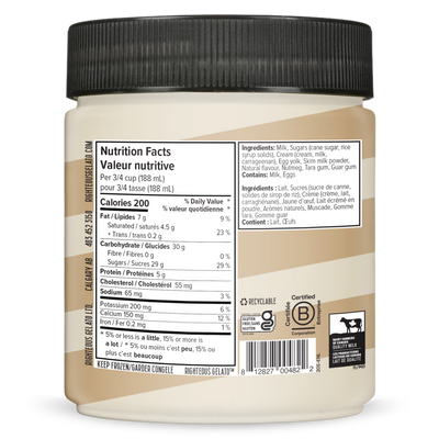 Milk, Sugars (cane sugar, rice syrup solids), Cream (cream, milk, carrageenan), Egg yolk, Skim milk powder, Natural flavour, Nutmeg, Tara gum, Guar gum